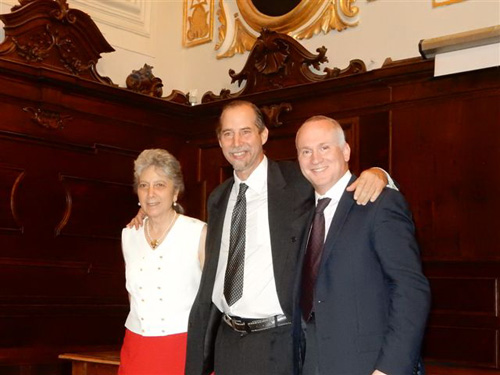 ospiti: l’on. Romeo Ricciuti, presidente emerito della Regione Abruzzo, nonché presidente del Circolo Aquilano e past-president dell’Associazione Abruzzese di Roma, con la consorte sig.ra Eleonora; la prof.ssa Vincenza Turco, capo delegazione FAI – L’Aquila; il prof. arch. Roberto di Paola, delegato ADSI Sez. Abruzzo e già sovrintendente ai Beni Culturali di Roma e di L’Aquila; la dott.ssa Vincenzina Basti, in rappresentanza dell’Inner Wheel Club di L’Aquila; la dott.ssa Tiziana Valente, funzionario della Sovrintendenza ai Beni Culturali di l’Aquila; il prof. Massimo Casacchia, presidente del Rotary Club L’Aquila; il dott. Andrea Gilioli, vicepresidente del Comitato Locale CRI di L’Aquila; la dott.sa Maria Rita Cassiani, presidente dell’Avis Comunale L’Aquila, in rappresentanza anche dell’Avis Provinciale e Regionale Abruzzo; il dott. Pietro Alberto Lucchetti, consigliere capo servizio vicario alla Presidenza della Repubblica; la marchesa Marisa Dragonetti De Torres con la figlia Francesca Rutili; il principe Maurizio Ferrante Gonzaga del Vodice, zio dell’artista; la principessa Isabella Heidkamp Gonzaga del Vodice, madre dell’artista; il dott. Massimo Lucà Dazio, presidente sia dell’ADSI – Sez. Abruzzo che del FAI – Regionale Abruzzo e Molise.
