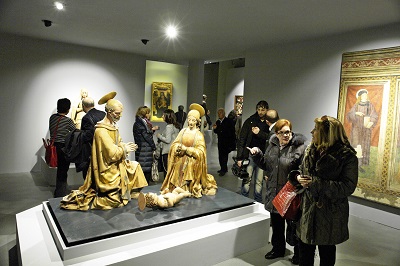 Il Museo, diviso in cinque ambienti espositivi (in cui si notano ancora i binari volutamente lasciati in ricordo del lavoro che ivi si svolgeva) è un concentrato di opere di famosi artisti italiani e abruzzesi (Saturnino Gatti, Andrea Delitio…) tra cui spicca il Trittico di Beffi: pittura su tavola del XV secolo. Il percorso parte da una sezione archeologica e si dispiega in altre sale in cui sono esposti simulacri in legno (assicurati su piastre antisimiche) e dipinti che hanno, in parte, come soggetto il culto Mariano. Da non dimenticare un’opera che è il cardine del rinascimento aquilano: la statua di legno intagliato del San Sebastiano di Silvestro dell’Aquila. Il gioco del chiaro scuro e di un severo realismo, con tratti tipicamente caravaggeschi, emerge nella natività della Vergine: dipinto del maestro emiliano Giacinto Brandi. Alcune opere esposte erano state gravemente danneggiate per via del sisma del 2009.