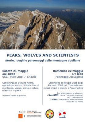 L’evento si articola in due giornate. Sabato 21 maggio alle 18, presso l’aula magna del GSSI, in Viale Crispi 7, Stefano Ardito terrà una conferenza sul valore delle nostre montagne non solo e non tanto sul versante ricreativo, ma anche e soprattutto su quello culturale in senso lato, ovvero storico, artistico, sociale, naturalistico, scientifico.