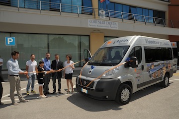 Enerpoint, Power-One, Sharp, Troiani e Ciarrocchi: partner del progetto “Il fotovoltaico per L’Aquila” donano al Comune un pulmino attrezzato per il trasporto disabili e anziani.