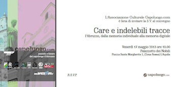 L’AQUILA – Si terrà venerdì 17 maggio, ore 10, a L’Aquila presso il Palazzetto dei Nobili il convegno “Care e indelebili tracce – l’Abruzzo, dalla memoria individuale alla memoria digitale” occasione di presentazione del nuovo motore di ricerca “Capoluogo.com”.Il nostro secolo sembra essere condannato a conservare, ma non a ricordare. Dopo la tragedia del 6 aprile 2009 abbiamo il dovere di formare la nostra coscienza, attraverso la memoria.“Un popolo che ignora il proprio passato non saprà mai nulla del proprio presente” insegnava Indro Montanelli.
