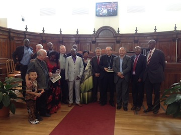 L’AQUILA – L’Assessore Alfredo Moroni, Vice Presidente del Comitato Perdonanza ed il Consigliere Maurizio Capri, delegato per le Città gemellate, hanno accolto ieri mattina una delegazione istituzionale del Burundi accompagnata da Don Enzo Chiarini, fondatore della ONG DAPADU che da 40 anni opera in Burundi e composta, tra gli altri dall’Ambasciatore, dal Ministro dell’Agricoltura, dal segretario del maggiore partito e da un Teologo del Burundi.Ad accogliere la delegazione anche l’Arcivescovo Metropolita, Mons. Giuseppe Petrocchi.