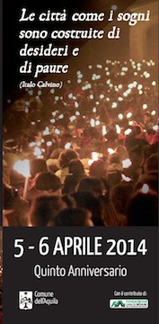 È con questa frase, tratta dalle “Città invisibili” di Italo Calvino, che il Comune dell’Aquila intende commemorare il quinto anniversario del sisma.