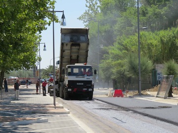 ovescia ossia siamo entrati nella fase finale dei lavori: per la giornata odierna la ditta che si è aggiudicata l’appalto, la Ingram, ha programmato il rifacimento del manto d’asfalto della carreggiata stradale, intervento che ha richiesto necessariamente la chiusura al traffico del tratto interessato, tra via Pepe e piazza Le Laudi. Lo stop alle auto è scattato già alle 6, quando sul posto sono entrate in azione due ruspe con la betoniera e dieci operai, per accelerare quanto più possibile le opere, che si chiuderanno a inizio serata. Per consentire lo svolgimento dei lavori abbiamo previsto, per la sola giornata odierna, due deviazioni viarie, ossia tutto il traffico sul lungomare Cristoforo Colombo, proveniente da nord e diretto a sud, è stato dirottato su viale P