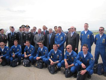 PESCARA – Il sindaco di Pescara Luigi Albore Mascia ieri mattina ha accolto all’aeroporto di Pescara la squadra delle Frecce Tricolori con il consigliere delegato Armando Foschi e il segretario generale del Comune Antonello Langiu, alla presenza anche del sindaco di Roseto Enio Pavone, del Prefetto di Pescara Vincenzo D’Antuono, del questore Paolo Passamonti, del Comandante del Nucleo aereo della Capitaneria di Porto Prencipe, del Comandante provinciale dei Carabinieri Marcello Galanzi, e delle massime Autorità militari cittadine, alla presenza dei ragazzi dell’Associazione Diversuguali di Gianna Camplone.