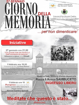 Il Comune di San Giovanni Teatino aderisce alla giornata della memoria e lo fa proponendo tre occasioni di incontro