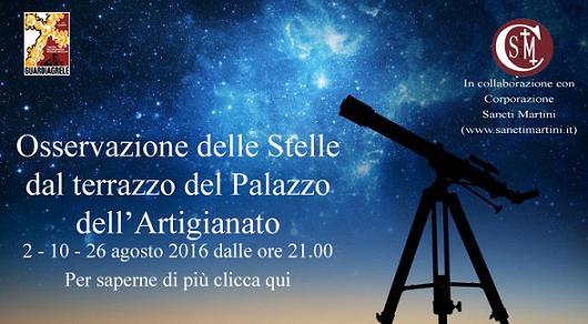 Le serate in programma si svolgeranno sulla terrazza panoramica del Palazzo dell’Artigianato, nei giorni 2-10 e 26 agosto dalle ore 21. Le osservazioni saranno guidate dal Dott. Clodoveo Masciarelli, astrofilo di grande esperienza.