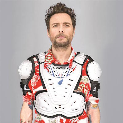 «Sulla copertina dell’album ho una pettorina da motocross. É un’armatura da poco, non una cosa da supereroe o da guerriero, è una bardatura per il fuoristrada, ma è pur sempre una protezione. Ogni protezione è insieme una dichiarazione di attacco e una rappresentazione della propria fragilità. Il grande saggio/mistico che si mette nudo dichiara la sua invincibilità, invece questa tuta da motocross, come un’armatura, dichiara la fragilità, la vulnerabilità, che è quello di cui parla questo album. Ogni canzone parla di una relazione, di un contatto possibile, di un abbraccio per affrontare la vita, per stare nella crepa, per cavalcare il fulmine».