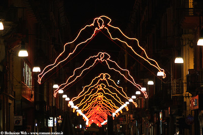 Un museo d’arte a cielo aperto allestito ogni anno per le vie e le piazze della città, questa l’ispirazione per l’allestimento delle arcate luminose a Pescara, che attinge all’origine stessa dell’evento torinese.