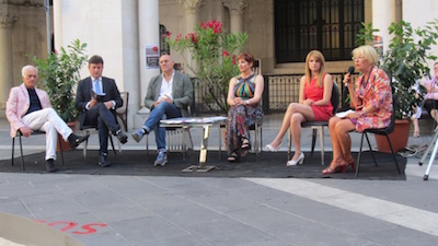L’artista alla presenza delle autorità è stata intervistata da Lilia D’Alesio, vj Weekend & Dintorni e Nino Germano, Vice Caporedattore TGR Abruzzo in Piazza Gian Battista Vico dove sarà collocata una sua installazione ispirata al terremoto del 2009.