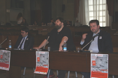 Passa poi la parola a Mario Adinolfi, il quale precisa immediatamente: “Io non ho nulla contro gli omosessuali, soprattutto il mio libro parla di moltissimi altri temi: aborto, eutanasia, pedofilia, ecc… la nostra non è una battaglia ideologica: è la prima volta infatti che mi trovo in sala con due consiglieri di due diverse fazioni politiche”.