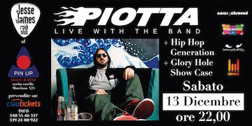 Il 13 dicembre, al Pin Up di Mosciano Sant’Angelo, sempre in collaborazione con il Jesse James Rock Club e la direzione artistica di Marcellusi e Pecorale, si terrà il concerto del rapper romano Piotta, con lo spettacolo della “Hip Hop Generation” e lo showcase della Glory Hole.