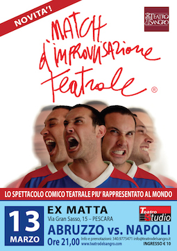 eatrale” dalla stagione 2014/2015. A Lanciano e Vasto sono partiti i corsi di avviamento al “Match di Improvvisazione teatrale” e i tornei con squadre provenienti da tutta Italia. Dalla stagione 2015/2016 anche a Pescara inizieranno i corsi e i tornei. L´ambiente esteriore e scenografico del match è quello di una partita di hockey su ghiaccio (maglie da gioco, “patinoire”) sport nazionale canadese. Lo spirito è quello di una competizione artistico/sportiva fra due squadre di giocatori/attori che si contendono la vittoria in 90 minuti di “gioco” divisi in due tempi. Un maestro di cerimonia illustra al pubblico le varie fasi dello spettacolo, un musicista scalda la platea e fa salire la tensione sul palco, un inflessibile arbitro garantisce la qualità e la correttezza dell´incontro. Dopo il “riscaldamento” pubblico, la presentazione dei giocatori e l´intonazione dell´inno ufficiale (pubblico in piedi e mano sul cuore), un fischio di sirena segna l´inizio dell´incontro. Il biglietto d’ingresso costa € 10,00. Prenotazione obbligatoria al n. 340-9775471.