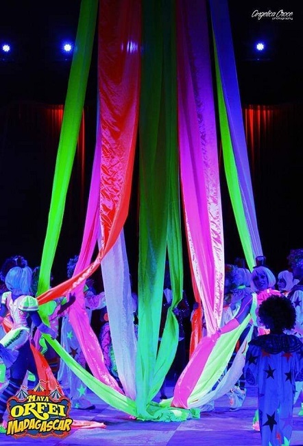 Presenti tutte le discipline circensi, in uno scenario di coreografie sfarzose con giochi di luci e colori che catturano il pubblico proiettandolo in un mondo fantastico, quello del circo. Trapezisti, acrobati, equilibristi, clown, contorsionisti, giocolieri, antipodisti, addestratori in simbiosi con i loro amati animali, ecco il Maya Orfei Circo Madagascar, la grande città viaggiante.