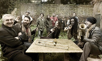 MED FREE ORKESTRA – Cinque Paesi, tre continenti e cinque lingue diverse, la Med Free Orkestra è un ensemble caleidoscopico composto da dodici musicisti provenienti da varie aree del sud del mondo: Perù, Grecia, Ucraina, Canada e naturalmente Italia, per rappresentare una delle esperienze più interessanti e originali nell’ambito musicale nazionale e del bacino del mediterraneo. Nei suoi live propone un pop-rock-balcanico-mediterraneo-orientale dando spazio alla musica mediterranea, a quella balcanica, klezmer, africana, e più in generale alla world music. La collaborazione attiva con artisti di fama nazionale ed internazionale provenienti anche da altre regioni del mondo (da Andrea Satta a BabaSissoko, da Paola Turci a Franky HI NGR, da Stefano Di Battista a Yannis Vassilakos, dai Nobraino a Emanuele Dabbono, da Ennio Fantastichini a Corrado Fortuna, da Claudio Fava a Andrea Rivera, da Erri De Luca a Claudio Prima-Banda Adriatica-, da Vincenzo Crivello a Gli Scontati, da Vincenzo Ostuni a Raffaele Lele Vanolli, da Paolo Briguglia a Alessandro Haber, da Claudio Santamaria a Roy Paci a Mbarka Ben Taleb) contribuisce a rafforzare questo concetto. Dopo “Pensiero Mediterraneo”, album di debutto pubblicato agli inizi del 2013, la Med Free Orkestra dà alle stampe “Background”, il nuovo disco pubblicato il 5 giugno 2014, dieci tracce che propongono nuovamente un trait d’union tra le diverse culture a noi circostanti, una matrice che parte dal funk-rock per integrarsi e fondersi con le esperienze musicali più originali ed inconsuete.