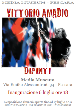 PESCARA – Oggi, 6 luglio 2011, alle ore 18.00, presso il Mediamuseum di Pescara in Piazza Alessandrini n. 34, sarà inaugurata la mostra di pittura di VITTORIO AMADIO dal titolo “Dipinti”. L’esposizione rimarrà aperta fino al 17 luglio. La seguente nota di Floriano De Santi delinea il profilo dell’artista: