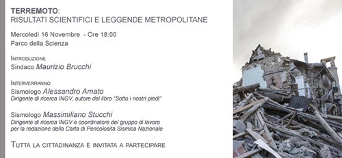 Con inizio alle ore 18.00 nell’auditorium del Parco della Scienza, i sismologi Alessandro Amato e Massimiliano Stucchi interverranno sul tema “Risultati scientifici e leggende metropolitane”.