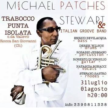 ATESSA (CH) – “Michael Patches Stewart & Italian Groove Band” il 31 luglio e il 1 agosto presso il trabocco Punta Isolata di Rocca San Giovanni (Ch). Due serate all’insegna del gusto e della buona musica nell’affascinante location che ospiterà, quest’anno, uno dei migliori trombettisti al mondo, definito erede di Miles Davis e noto per la ventennale collaborazione con i bassisti Marcus Miller e Victor Bailey e il cantante Al Jarreau. Micheal Patches Stewart si esibirà insieme alla Italian Groove Band, composta dal bassista abruzzese (Atessa) Enrico Bevilacqua, famoso per le consolidate collaborazioni con Giò Di Tonno e lo stesso Stewart nonché organizzatore dell’evento, il batterista scozzese Derek Wilson, musicista di Antonello Venditti e Zucchero, il percussionista Rosario Jermano, storico collaboratore di Pino Daniele, il pianista Stefano Sastro, conosciuto oltre che per i suoi lavori da solista anche per la collaborazione anch’essa ventennale con il cantante-chitarrista Alex Britti, e il chitarrista abruzzese Roberto Di Virgilio, detto Funkman, storico collaboratore di Michele Zarrillo. Alla voce l’ammaliante Natascia Bonacci, contralto autentico, definita dalla critica musicale una delle migliori voci black d’Europa. Entrambe le serate inizieranno alle ore 20,00 con una ricercata cena di pesce, a seguire si terranno i concerti.