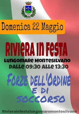 MONTESILVANO (PE) – Torna l’appuntamento con “Riviera in Festa”, la manifestazione organizzata dal Comune di Montesilvano per animare il lungomare. Domenica 22 maggio a partire dalle 9:30 fino alle 13:30 verrà allestita, nel tratto di riviera compreso tra via Strasburgo e via Calabria, una mostra dedicata alle Forze dell’Ordine e di Soccorso.