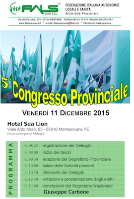 MONTESILVANO (PE) – Si svolgeranno all’interno dell’Hotel Sea Lion a Montesilvano, domani 11 dicembre i lavori del 5° Congresso Provinciale della FIALS.