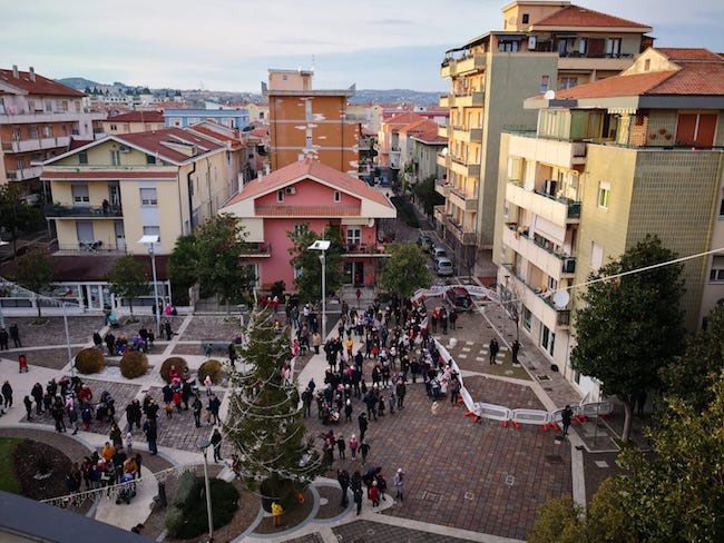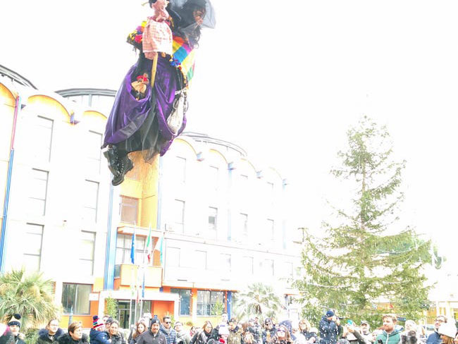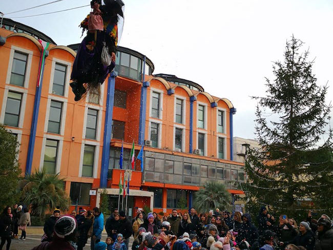 MONTESILVANO – Le befane sono arrivate dal tetto del municipio ed è stata una grande festa per i tanti bambini di Montesilvano che le hanno accolte in piazza Diaz. Anche quest’anno, infatti, si è rinnovata la manifestazione del Volo dell’angelo, organizzata dalle associazioni Nuovo Saline e Natura Abruzzo. Oggi pomeriggio, a partire dalle 15, sette befane, tutti componenti delle due associazioni a cominciare dalla presidente di Nuovo Saline, Halyna Fenytska, sono scese dal tetto del municipio e hanno portato ai bambini doni, dolci e caramelle, offerti da alcune attività commerciali cittadine, il bar Daniels, il bar Fuori dal Comune e la ditta Falcone.