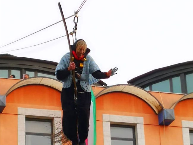 «É una bella manifestazione che abbiamo realizzato in occasione della cerimonia nazionale di consegna della Bandiera Verde e poi replicata anche il 5 gennaio 2018», spiega l’assessore agli Eventi, Ottavio De Martinis, «É una iniziativa spettacolare che diverte e sorprende i bambini ma anche gli adulti, anche perché non è proprio una passeggiata. Pur con tutte le massime misure di sicurezza che vengono adottate, vedere persone che, attaccate a una fune, si calano dal tetto del municipio per arrivare in piazza è uno show affascinante. Un ottimo modo per presentare la festa della befana».