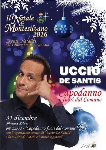 festeggiare la notte di San Silvestro a Montesilvano. «Dopo il successo dello scorso anno con la prima edizione di Capodanno fuori dal Comune – annuncia l’assessore alle manifestazioni Ottavio De Martinis – sabato 31 dicembre brinderemo al nuovo anno sempre in piazza Diaz. A divertirci sarà il grande comico Uccio De Santis, artista di esperienza che anno dopo anno sta accrescendo il suo pubblico».