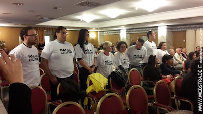 Una colorita contestazione a Cantagallo è stata subito organizzata nella sala del Promenade da un gruppo di giovani (tra di loro il consigliere comunale di Montesilvano Anthony Aliano). Sulle magliette indossate dai manifestanti si poteva leggere la scritta “Mai più Ciclone”, e sul retro “Vergogna”. Dopo la vivace contestazione all’organizzatore dell’evento, si è cominciato a discutere del tema alla presenza di alcune classi di studenti dell’Istituto tecnico Alessandrini.