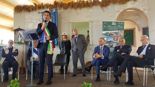 «Sono passati 75 anni, era l’11 e 12 ottobre del 1943», ha detto il sindaco Francesco Maragno, «quando i bombardamenti della seconda guerra mondiale distrussero la ferrovia a Montesilvano e solo oggi riusciamo a inaugurare la tettoia per restituire questo piccolo spazio alla città che sarà reso ancora più fruibile. I ringraziamenti oggi saranno tantissimi perché questo progetto non poteva essere realizzato soltanto dell’intuizione e dalla disponibilità di una persona, ma ho visto partecipare a questa iniziativa tantissime persone note e meno note. Sicuramente è stato fondamentale l’apporto della Fondazione PescarAbruzzo, del professor Nicola Mattoscio, così come è stato importante il lavoro del Comune di Montesilvano nelle persone di Gianni Scannella, del progettista Marco Volpe, dell’architetto collaudatore Sandro Germano, della ditta esecutrice dei lavori Edilbeth di Pino Di Fazio, e l’Acaf (Associazione culturale amatori ferrovie) nelle persone di Renzo Gallerati, Antonio Schiavone e Antonello Lato e ultimo, ma non certo in ordine di importanza, il direttore generale della Fondazione delle Fs italiane Luigi Cantamessa.