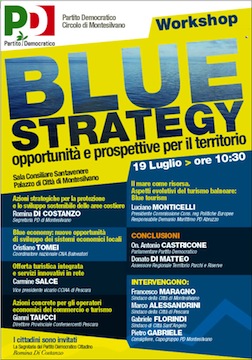 MONTESILVANO (PE) – Oggi, 19 luglio alle ore 10.30 presso la sala consiliare E.Santavenere del Palazzo di Città di Montesilvano, si terrà il workshop organizzato dal Partito Democratico cittadino sul tema della Blue economy, dal titolo “Blue strategy: opportunità e prospettive per il territorio”.