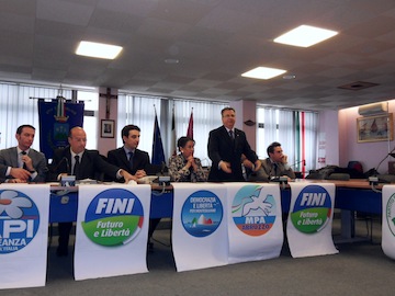 Sono intervenuti on.le Daniele Toto Vice Coordinatore Nazionale di Futuro e Libertà, Maurizio Teodoro responsabile nazionale enti locali Futuro e libertà, Mirco Velluto Coordinatore Provinciale di Futuro e libertà, Oscaro Biferi Coordinatore Futuro e libertà Montesilvano, Giulio Petrini responsabile Movimento per le Autonomie Montesilvano, Loris Di Giovanni responsabile del Partito Repubblicano, Loredana Di Lorenzo della segreteria regionale dell’Alleanza per l’Italia e Fabrizio treccia segretario Api Montesilvano, Leo Brocchi responsabile della lista civica Democrazia e libertà.
