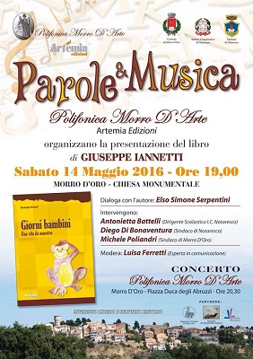 MOSCIANO SANT’ANGELO (TE) – Sabato 14 maggio 2016, alle ore 19.00, a Morro D’Oro presso la Chiesa Monumentale, Artemia Edizioni in collaborazione con la Polifonica Morro D’Arte ed il patrocinio del Comune di Morro D’Oro, il Comune Di Notaresco e l’Istituto Comprensivo di Notaresco presenta l’evento: