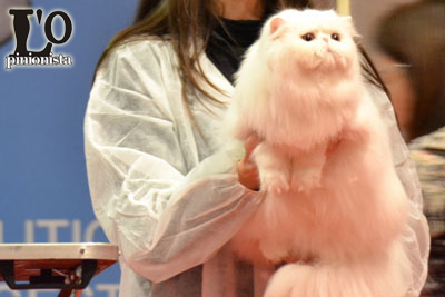 A seguire, i colorati felini hanno fatto capolino dalle sontuose gabbiette per l’ Animal Show, in cui hanno preso parte i migliori esemplari di ogni specie a seguito della preselezione avvenuta in mattina e la meticolosa visita veterinaria avvenuta il giorno addietro. I mici hanno sfilato sotto gli occhi estasiati del numeroso pubblico accorso all’evento divisi in quattro categorie, le prime tre a seconda della lunghezza del pelo (lungo, semilungo e corto) e l’ultima comprendente i gatti di razza siamese ed orientale, nonché per sesso ed età. Grazie alla partecipazione dei giudici L. Comorio, A. Ghibaudo, N. Padovano, L. Burani e la finlandese Jaana Jyrkinen sono stati decretati i vincitori per ogni categoria che si sono poi sfidati in un’entusiasmante ultimo confronto per il titolo di The Best, vinto all’unanimità da Welcome The Black Diamond, il persiano di Tatiana Motolese, nella sua prima Expo.