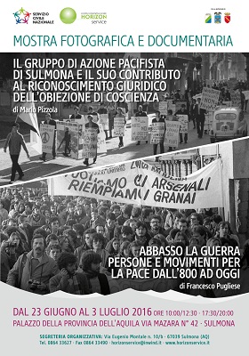 Dopo il Convegno di giovedì 23 giugno, che ha richiamato ospiti di rilevanza nazionale per un dibattito sul Servizio Civile Nazionale oggi, la mostra organizzata dalla Horizon Service sarà aperta al pubblico fino a domenica 3 luglio 2016 presso il Palazzo della Provincia dell’Aquila a Sulmona