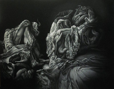 Per questo motivo è nata l’idea della mostra internazionale Luci e ombre: H.R. Giger tribute, che ha coinvolto 29 artisti locali, nazionali e internazionali, riuniti per ricordare Hans Ruedi Giger, maestro del dark surrealism, in occasione del primo anniversario della sua morte, avvenuta il 12 maggio 2014. Pittore, scultore, grafico e scenografo, nei suoi lavori ha mostrato il lato più oscuro del surrealismo. Ha creato, insieme a Carlo Rambaldi, il celebre mostro di Alien di Ridley Scott per cui ha ottenuto l’Oscar agli effetti speciali nel 1980. Rivoluzionario per aver introdotto l’uso dell’areografo nella pittura, con cui è riuscito a ricreare conturbanti effetti realistici; grazie ad una perizia maturata con il suo lavoro di designer e negli anni di scuola, con l’utilizzo di un bicromismo tanto essenziale quanto inquietante, Giger ha trovato consenso in tutto il mondo. Sua è l’invenzione dei biomeccanoidi, creature sorta di macchine “organiche”, od organismi futuribili, in cui metallo e carne si fondono.