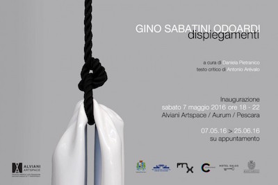 PESCARA – Alviani ArtSpace, spazio di ricerca e di contaminazione tra linguaggi artistici e tecnologici, all’interno dell’Aurum di Pescara, diretto da Lucia Zappacosta, sabato 7 maggio alle ore 18 presenta “Dispiegamenti” la mostra personale di Gino Sabatini Odoardi, a cura di Daniela Pietranico, con testo critico di Antonio Arévalo, fautore e creatore del primo Padiglione del Cile alla Biennale di Venezia, la mostra gode del patrocinio della Presidenza del Consiglio del Comune di Pescara e dell’Assessorato alla Cultura.