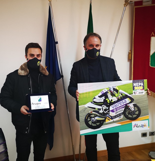 Così, l’assessore regionale allo Sport, Guido Quintino Liris, lo scorso 29 gennaio mattina nella sede della Regione Abruzzo a Pescara, durante la cerimonia di consegna di una targa al pilota motociclistico giuliese. “Classe 2001, dopo aver iniziato a gareggiare in minimoto all’età di otto anni – ha ricordato l’Assessore – Nepa riesce a vincere nel 2014 il campionato italiano PreMoto3. Nel 2016 irrompe nel campionato italiano Velocità, nel 2017 disputa due Gran Premi nel CIV Moto3 conquistando tre vittorie e il 2018 segna il suo esordio nel motomondiale: 40 gare disputate, ottenendo come miglior risultato il settimo posto al Gran Premio d’Europa. Il 7 novembre 2020 viene ufficializzata la firma con il team BOE Skull Rider Facile Energy, al fianco di Riccardo Rossi. Una carriera di tutto rispetto quella di Stefano – ha commentato Liris – e in qualità di assessore allo sport tengo particolarmente a conferire un riconoscimento di benemerenza ad un’altra eccellenza della nostra regione. Stefano è una promessa già mantenuta, in parte, del professionismo abruzzese, lo seguiremo per le nuove sfide che lo attendono nel 2021 con apprensione e grande fiducia. La giornata odierna vuole essere augurale per una splendida futura carriera dopo un anno pesantissimo, anche per lo sport, che non ha permesso agli atleti di dare continuità alle proprie preparazioni e prestazioni. Crediamo in lui anche come ambasciatore dell’Abruzzo – ha ribadito – in Italia e nel mondo, perché abbiamo bisogno di testimonial positivi per esportare la nostra regione all’estero, in perfetta linea con la scommessa che questa amministrazione regionale sta perseguendo”.