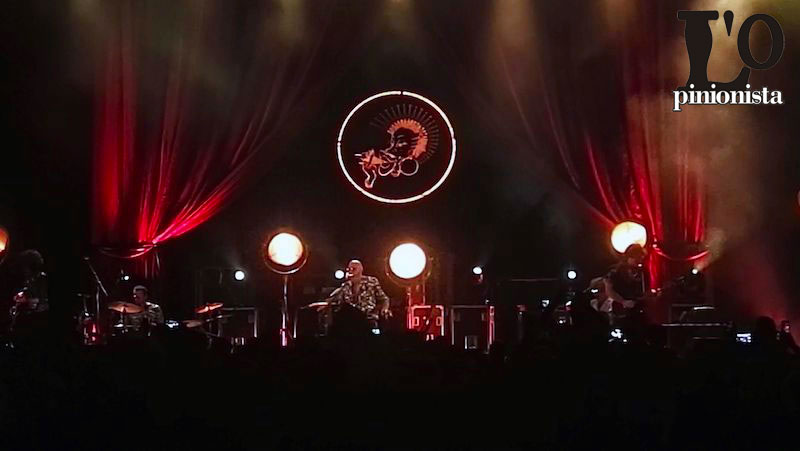 24 brani eseguiti da “Che rumore fa la felicità?”, “In ogni Atomo” a “Brucerò con te”, “Il libro in una mano, la bomba nell’altra”. C’e’ spazio per “Tuyo”, cover Rodrigo Amarante prima di regalare un crescendo di hits che hanno scaldato anche il pubblico seduto in platea tanto da finire in gran parte sotto il palco nei brani “Radio Conga”, “Rotolando verso Sud”. Quindi quasi 5 minuti di interruzione con il primo cittadino di Francavilla, Luciani, sul palco ad avvisare che non era possibile, per ragioni di sicurezza, proseguire in questo modo il concerto e invitando I fans a tornare nei propri posti.