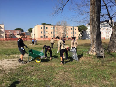 PESCARA – Un’area totalmente nuova, pulita e sfalciata, pronta per essere fruita da tutti i pescaresi. È così che si presenta oggi il giardino verde dove un tempo sorgeva il monopolio di stato, in via pasdolanciano, a pochi metri dal centro citta, dopo che ha visto coinvolti tutti i gruppi scout del distretto di Pescara (Rover e Scorte), i gruppi Scout di Federazione Scout Europa, Agesci , Cnj e Pescara 1 (Spirito Santo), che armati di rastrelli, pale e cariole, hanno ripulito nella mattinata di oggi gli 8 ettari di terreno.