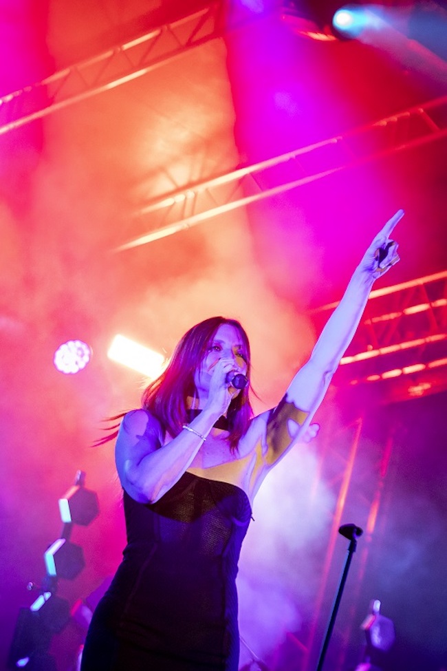 Dopo la sua discesa in platea per “Makumba” e “Hula hop”, è tornata a calcare il palco invitando però gli spettatori ad abbandonare le proprie sedie e raggiungerla ai piedi della struttura cantando assieme “Glicine”, “Sono solo parole”, “Se ti innamori muori” e “Vuoto a perdere”, il bis di “Non sono io” e chiudendo in un clima di grande festa estiva con l’ultima hit “Oh ma” l’edizione del Decennale di Emozioni in Musica.
