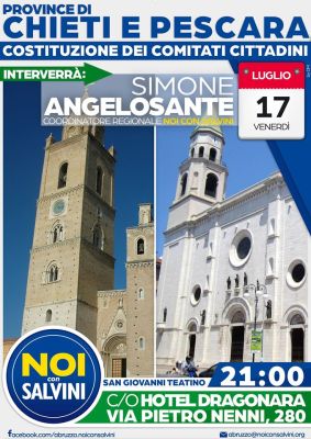 SAN GIOVANNI TEATINO (CH) – Si svolgerà oggi, venerdì 17 luglio alle 21:00, presso l’hotel Dragonara in Via Pietro Nenni 280, San Giovanni Teatino, il vertice del movimento ‘Noi con Salvini’ della macroarea Chieti-Pescara, dove si costituiranno i relativi comitati cittadini. Si valuteranno, inoltre, le azioni da intraprendere in vista delle prossime elezioni amministrative, in cui molti comuni abruzzesi saranno chiamati al rinnovo delle cariche. Interverranno il Dott. Simone Angelosante, coordinatore regionale del movimento ‘Noi con Salvini’, Giuseppe Bellachioma, responsabile organizzativo regionale ‘Noi con Salvini’ e Davide Traini, coordinamento regionale ‘Noi con Salvini’. “Padrone di casa”, il referente locale Donato Angelini, che spiega: “Si tratta di un vertice in cui vogliamo discutere di programmi e strategie. L’entusiasmo che registriamo quotidianamente attorno al nostro movimento ci impone di muoverci rapidamente e con largo anticipo. Vogliamo dimostrare di poter essere una forza di governo e non solo di opposizione e lo vogliamo fare attraverso proposte concrete. Inoltre voglio far presente che il movimento Noi con Salvini di San Giovanni Teatino potrà contare anche su un punto di riferimento istituzionale come Federico Di Palma, neo-eletto consigliere provinciale a Chieti”.