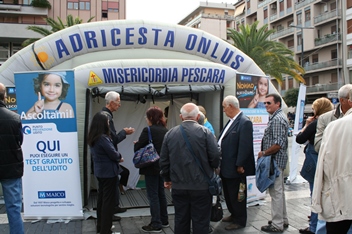 Ma soprattutto, anche l’edizione numero quattro di “Nonno Ascoltami!”, è stata una grande festa: tanti nonni, accompagnati dai propri nipotini, si sono messi in fila nelle principali piazze di Abruzzo e Molise, tra palloncini e clown festanti.Ma sono le cifre che meglio di ogni osservazione, possono raccontare il significato della giornata: sono stati tantissimi i controlli effettuati su tutte le piazze, che con l’aggiunta di Penne, sono salite ad otto: circa 2.100, infatti, i controlli dell’udito, grazie ai presidi medici gonfiabili messi a disposizione dalla Misericordia o dalla Croce Rossa Italiana.Pescara, Chieti, Lanciano, Teramo, l’Aquila, Giulianova, Penne, Termoli, otto piazze che contemporaneamente sono diventate il simbolo della prevenzione e di un modo nuovo di intendere la salute.Ad accogliere i nonni c’erano ben 67 medici specialisti del settore, coadiuvati da quasi centotrenta addetti tra tecnici audioprotesisti, audiometristi e logopedisti e volontari della Misericordia e della Croce Rossa.Un totale di 250 persone, felici di portare il proprio contributo alla lotta alla sordità: un vero e proprio esercito della salute e della prevenzione.