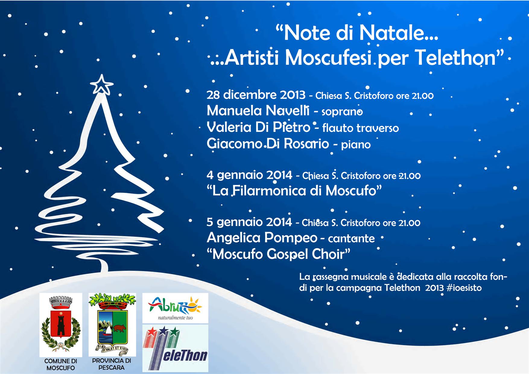 “Ci auguriamo – dice Faieta – che i cittadini rispondano positivamente al nostro appello, dimostrando ancora una volta di essere sempre pronti a partecipare ad eventi con finalità benefiche. Aspettiamo tutti, dunque, anche dai centri vicini, e li invitiamo a partecipare con un piccolo contributo alle tre serate, intitolate “Note di Natale…Artisti Moscufesi per Telethon””.