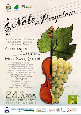ORTONA (CH) – Sabato 24 Ottobre alle ore 20.30 presso il Teatro F.P. Tosti di Ortona si terrà lo spettacolo Note di Pergolone, dedicato alla figura di Vito Cavuti e dei suoi rari violini in pergolone, organizzato dalla Fam. Cavuti e dal gruppo Micoperi Spa, con la direzione artistica di Arianna Perazzini. La serata, ad ingresso gratuito, vedrà sul palco il maestro Alessandro Cosentino (violinista dell’Orchestra Giovanile L. Cherubini, diretta da Riccardo Muti) con il suo progetto Minor Swing Quintet, che presenterà il suo nuovo disco “Mapo Salato” dedicato alla musica Gipsy Jazz.