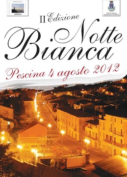 PESCINA (AQ) – È in programma per il 4 agosto a Pescina, la seconda edizione della “Notte Bianca” organizzata dall’Associazione Commercianti di Pescina (ASPECO), presieduta da Giorgio Angelone, con la collaborazione dell’Assessore al Commercio, dott. Antonio Iulianella, e patrocinata dall’Amministrazione Comunale.L’evento, imperdibile e unico per il suo genere nella Valle del Giovenco, si snoderà lungo le strade principali del Paese dalla prima serata del 4 agosto fino all’alba del 5 agosto 2012.