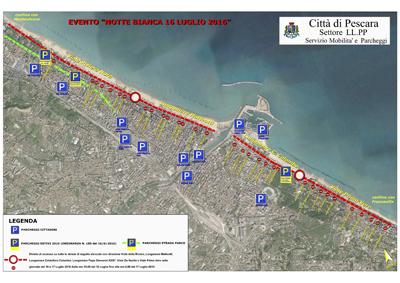 “Un successo che dobbiamo sia all’offerta di eventi di qualità, che alla sinergia con tantissimi soggetti – aggiunge il vice sindaco e assessore alla Mobilità Enzo Del Vecchio – Cominciamo dai volontari di Protezione Civile e del soccorso (Misericordia, Croce Rossa e 118), che saranno sentinelle e riferimenti sia per il soccorso che per l’assistenza ai cittadini sulle strade. Tutti i quasi 10 km di costa saranno inaccessibili alle auto, dalle ore 18 chiuderemo il traffico, agevolando quello in uscita dalla riviera. Abbiamo attivato tutte le aree di parcheggio a cui si aggiunge la strada parco, unica area a pagamento anche per evitare che venga utilizzata come arteria di transito alternativo alla riviera (tariffa 3 euro), allargheremo anche l’area di risulta alla zona dell’ex mercatino etnico per arrivare a un budget di 2.400 posti macchina; grazie alla Capitaneria si aggiungono le aree sosta del porto e golenali. I mezzi di soccorso e gli agenti della Polizia Municipale saranno presenti in forze e con ogni mezzo: moto, quad, biciclette e altro. Con un vero e proprio spiegamento di uomini, mezzi e transenne cercheremo di ridurre al minimo i disagi, confidando come sempre nella collaborazione della cittadinanza”.