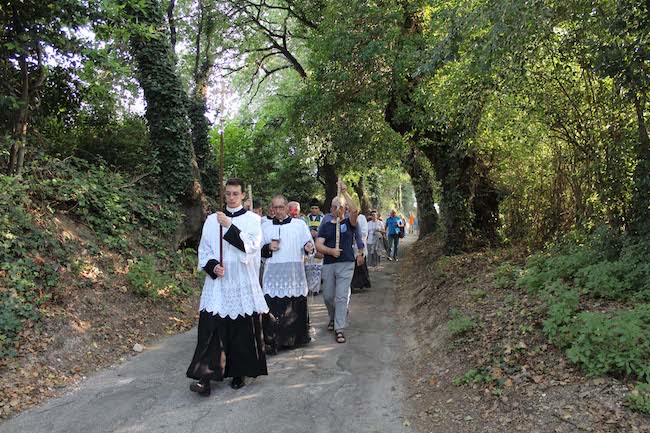 Ad aprire le celebrazioni sono state la benedizione del piccolo altare allestito all’ingresso del Borgo e la processione della statua e dell’effige del santo, seguite dalle coperte tradizionali abruzzesi, attraverso le stradine del Borgo, sino ad arrivare sulla prima collina per la benedizione del lago, a memoria del Giordano, e del fuoco.