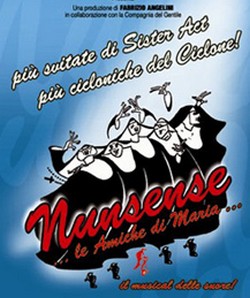 TRAMA – “Nunsense” (gioco di parole tra nun – suora e nonsense), è la storia di cinque esuberanti suore che, scampate ad una tragedia che ha coinvolto le loro consorelle, ed avendo un obiettivo da conseguire, decidono di realizzare uno spettacolo per raccogliere fondi. Ed è a questo punto che si scoprono ballerine, cantanti ed attrici e danno vita a situazioni veramente divertenti. Nunsense ha debuttato nel teatro “Cherry Lane” di New York il 12 Dicembre 1985. È stato il secondo musical della storia Off-Broadway per permanenza continuativa in scena (otto anni). Ha vinto quattro premi “Outer Critics Circle Awards”, tra i quali quello di miglior musical off-Broadway ed è stato rappresentato in tutto il mondo in più di 26 lingue. Più svitate di Sister Act…più cicloniche del Ciclone queste cinque suorine ne promettono davvero delle belle, fra balli, canti e battute esilaranti, tanto che, come assicura il regista, “Non vederle…è un peccato!”.