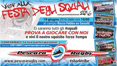 Il Sindaco di Pescara Avv. Marco Alessandrini e l’Assessore allo Sport Dott. Giuliano Diodati saranno parte attiva della “shark tribe” e si cimenteranno in drop, touche e prove di mischia.
