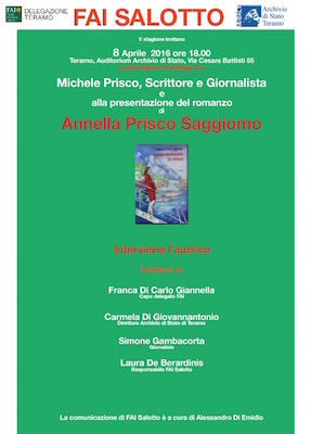 Ospite d’eccezione del dibattito sarà la figlia del grande scrittore e giornalista, Annella Prisco Saggiomo, che presenterà il suo romanzo Appuntamento in rosso (Ed. Guida, 2012). Insieme all’autrice del libro, interverranno il capo delegato del FAI Teramo, Franca Di Carlo Giannella, il direttore dell’Archivio di Stato di Teramo, Carmela Di Giovannantonio, il giornalista e critico letterario Simone Gambacorta, e la responsabile di FAI Salotto, Laura De Berardinis.